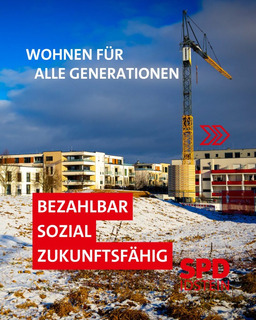 Bezahlbarer Wohnraum ist eine der zentralen sozialen Fragen unserer Zeit. Wir als SPD Idstein wollen, dass unsere Stadt für Menschen aller Altersgruppen und Lebenslagen attraktiv und bezahlbar bleibt. Deshalb setzen wir uns gezielt für den Bau und den Erhalt von gefördertem Wohnraum ein. Für Familien, Alleinerziehende, Seniorinnen und Senioren, Studierende und Menschen mit Einschränkungen.